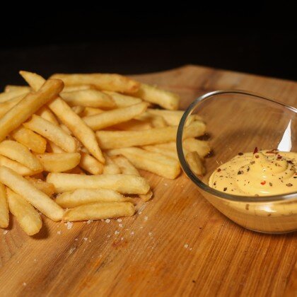 Чесночные гренки из бородинского хлеба с сыром моцарелла. Соус в комплект не входит.