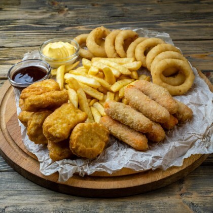Хрустящий картофель, обжаренный во фритюре. Соус в комплект не входит.