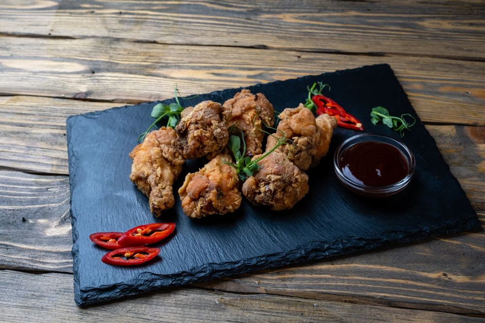 Крылышки , обжаренные во фритюре. Соус в комплект не входит.
